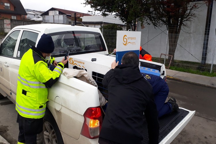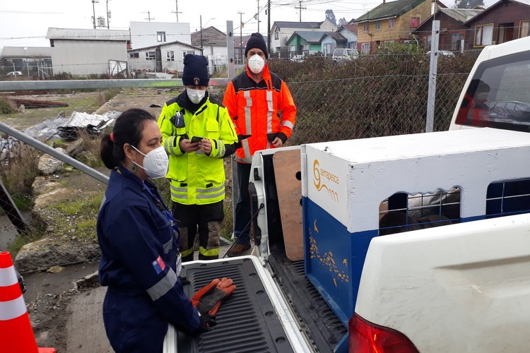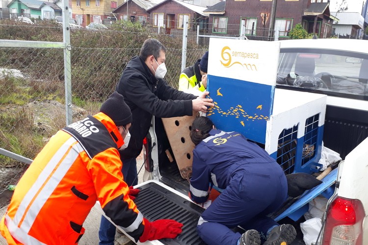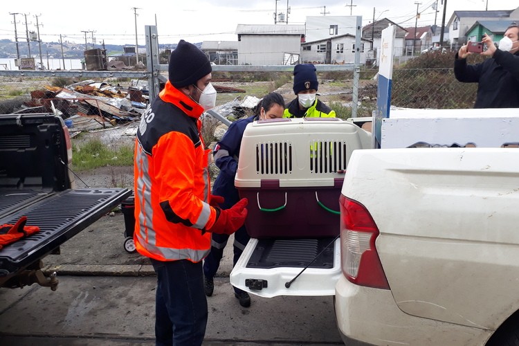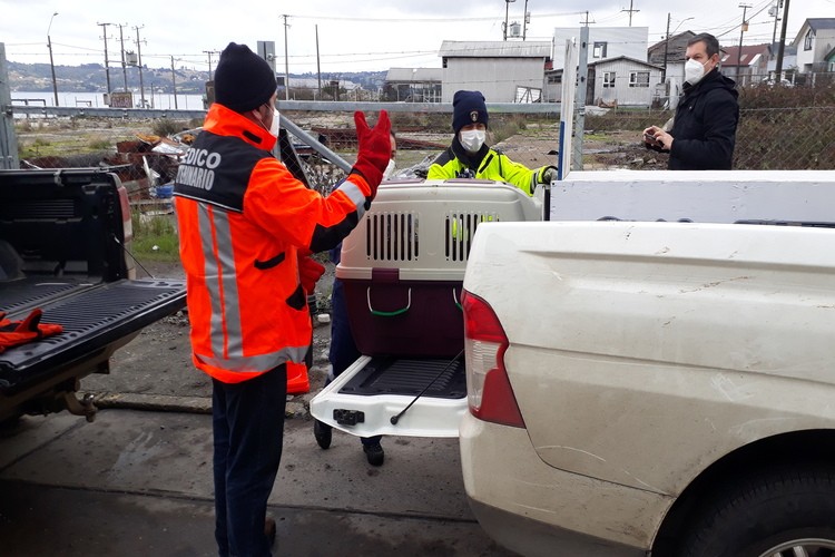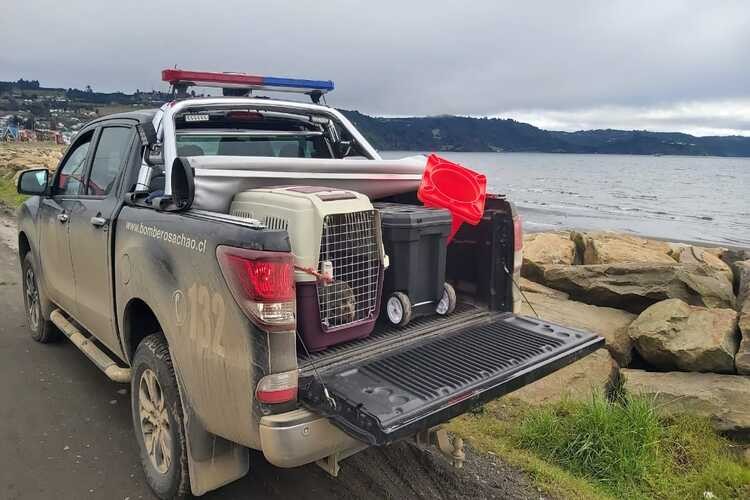 Cerca del mediodía de hoy nuestra central de alarmas informaba que se había recepcionado un llamado telefónico que indicaba que en el sector costero de Marine Harvest de nuestra ciudad se encontraba un lobito de mar asustado y desorientado. Acudieron al llamado el Comandante Sr. Ruperto Soto Altamirano y el Sr. Julio Pérez Martinic integrante del Grupo de Apoyo Veterinario de nuestra institución quienes pudieron percatarse que no se encontraba en buenas condiciones de salud. Después de hacer las coordinaciones correspondientes el lobito fue trasladado a la ciudad de Dalcahue para concretar la entrega a Sernapesca quienes posteriormente lo fueron a dejar a la ONG Chiloé Silvestre en Pullinque sector Nal Bajo de la comuna de Ancud quienes en su facebook informaban que estaba en malas condiciones, desnutrido y deshidratado, además, de sufrir la pérdida de su globo ocular.